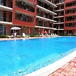 Семеен хотел Sunset Beach - Menada Apartments в Слънчев бряг предлага на гостите възможност да се насладят на залезите в близост до езерото Черепаши, разположено на само 6 минути пеша. Този апартамент разполага с кухненски кът и плувен басейн на отделен балкон.